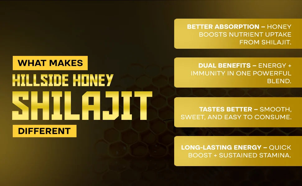 A delicious fusion of pure Himalayan Shilajit resin and raw, natural honey, Hillside Honey Shilajit is designed for those who want the power of Shilajit with a naturally sweet and smooth taste. It combines the vitality-boosting benefits of Shilajit with the antibacterial and immune-supporting properties of raw honey.